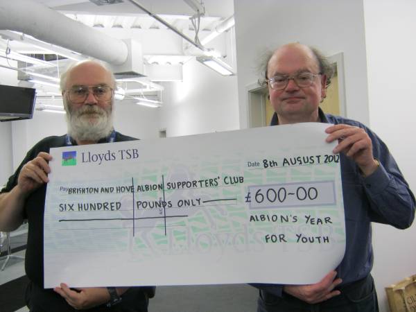Above is the photo I took at the AGM of Paul Welch handing over the cheque to John Kirkland for £600 as the residue from the Year for Youth which was set up during the darkest years at Gillingham to pay for kit and equipment for our upcoming Youth Team. It is now thought that the club's set up is such that we will not be called upon any time soon to contribute in the same way and the trustees of the Year for Youth voted to terminate the fund with immediate effect.