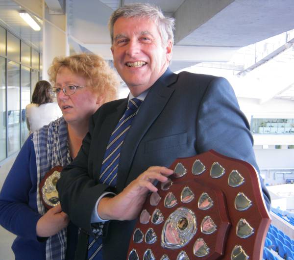 We had a very high percentage of votes and we were pleased to announce, on the night, that the worthy winner was Martin Perry but as he was not at the AGM that evening we were able to get the engraving and new surround to the original shield ready for what we hoped would be a presentation on the pitch. Due to the ridiculous array of altered kick-off times during August and the fact that Martin decided to take a well-earned holiday in the first part of September the first opportunity was at the Birmingham home game. We applied, as usual, for the pitch-side presentation only to be told that for reasons that were withheld from us, this had to take place in the boardroom!