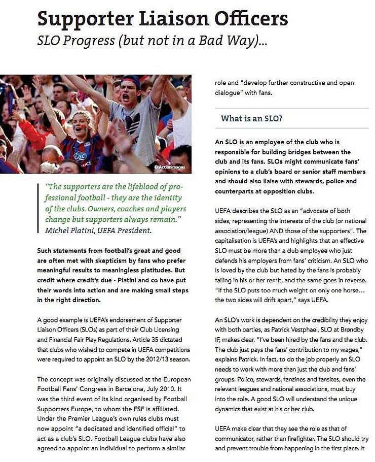 The Supporters' Club is a member of the Football Supporters' Federation. The FSF is like a union of football fans, clubs and organisations. It's aim is to promote the interests and welfare of football fans. In 2012 the 92 Premier & League clubs had to introduce a position of Supporter Liaison Officer.Click here for FSF Supporters Summit - the annual report can be downloaded