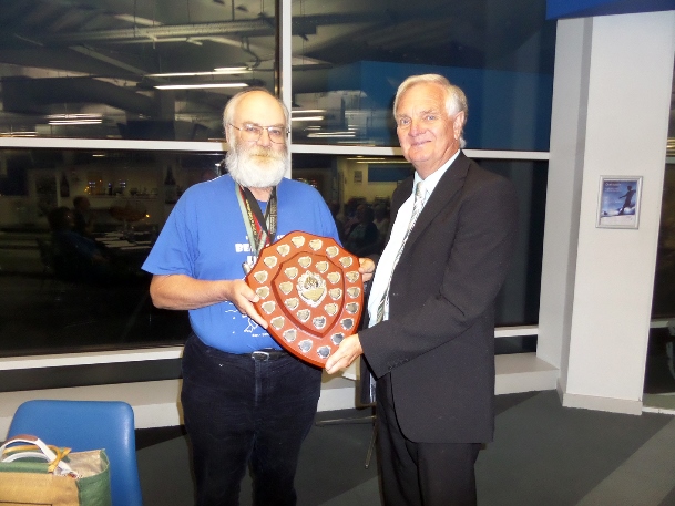 John Hewitt presents this year's Sarah Watts Trophy to John Kirkland.